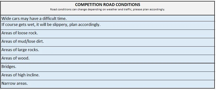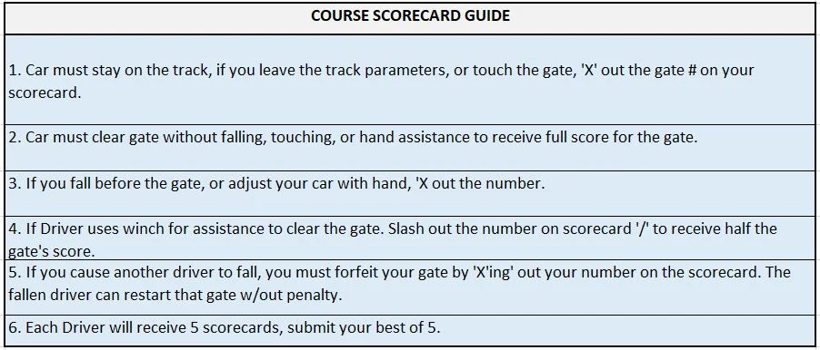 Below is an example of the Driver's Competition Scorecard.